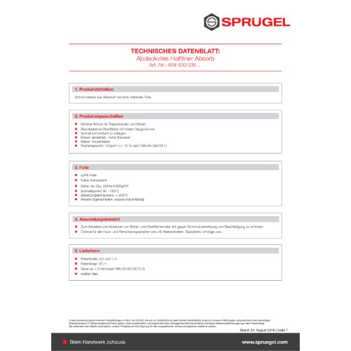 Schutzmaterial aus Vliesstoff mit stark haftender Folie