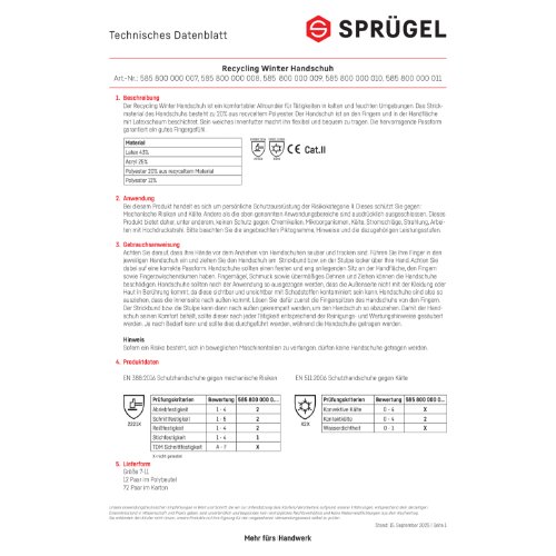 Der Recycle Winter Comfort ist ein komfortabler Allround-Winterhandschuh für Tätigkeiten in kalten und feuchten Umgebungen. Das Strickmaterial des Handschuhs besteht zu 20% aus recyceltem Polyester. Der Handschuh ist an den Fingern und in der Handfläche mit Latexschaum beschichtet. Sein weiches Innenfutter macht ihn flexibel und bequem zu tragen. Die hervorragende Passform garantiert ein gutes Tastempfinden. Der Recycle Winter Comfort Handschuh ist zudem „OekoTex-zertifiziert“.
