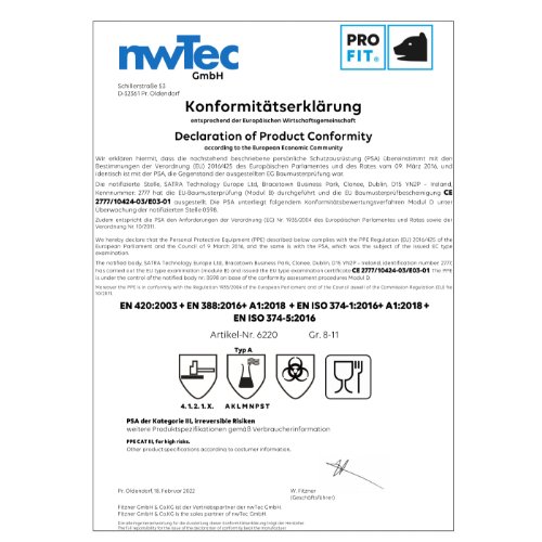 - EN 388: 4121X,