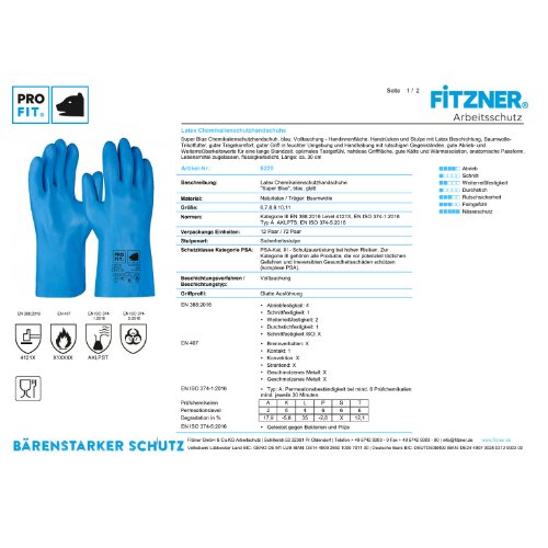 Latex Chemikalienschutzhandschuhe "Super Blue", glatt