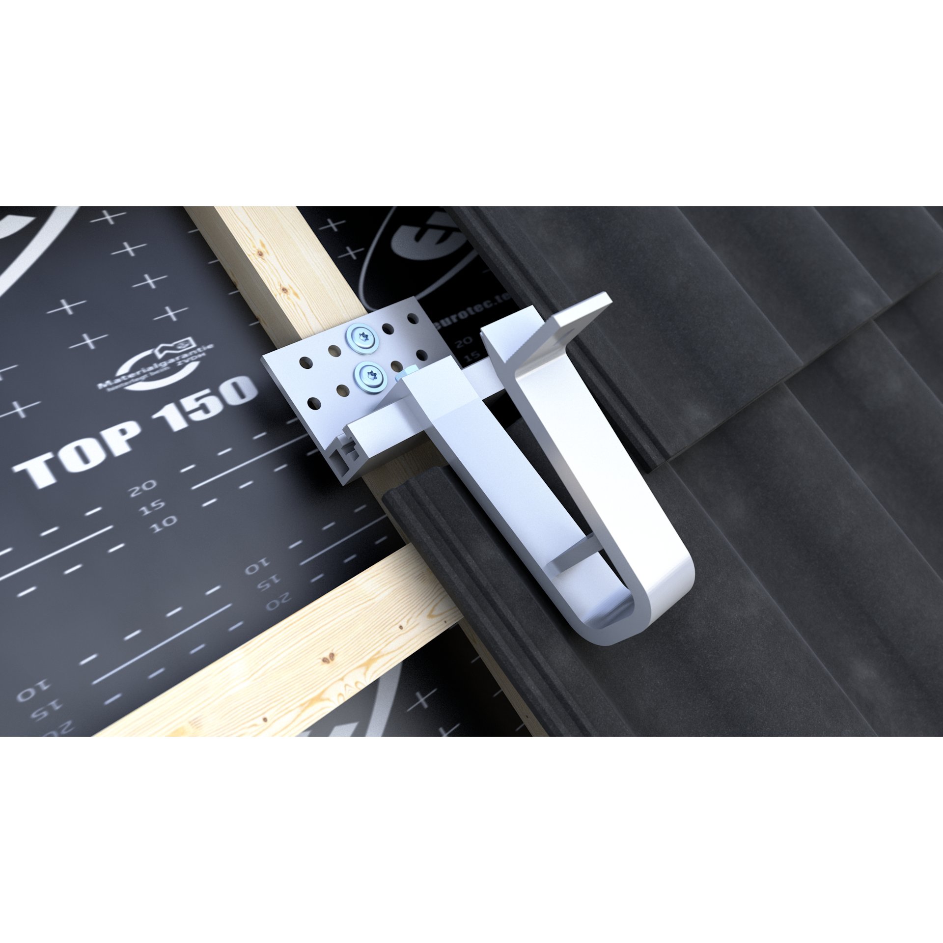 Der Dachhaken EASY 2D extra stark kommt in Kombination mit dem Montageschiene EASY für die Montage von Solarpaneelen auf Steildächern zum Einsatz. Der Dachhaken zeichnet sich durch eine höhere Materialstärke aus, was ihn besonders für hohe Schnee- und Windlasten auslegt. Das Langloch an der Fußplatte des Dachhaken EASY 2D extra stark ermöglicht eine Variation der Steghöhehöhe, sodass der Dachhaken besser an die Dachpfannen und Traglattung angepasst werden kann.