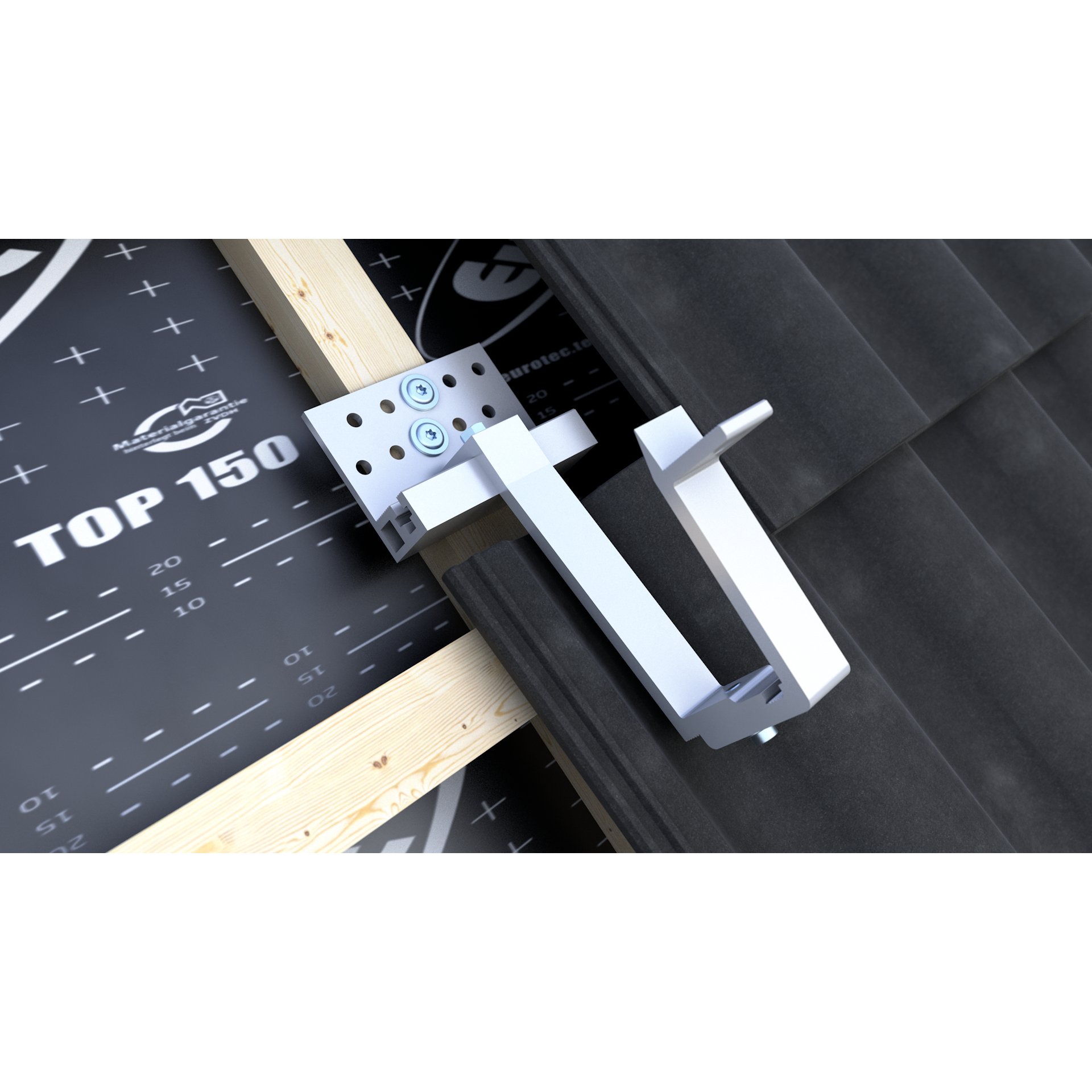 Der Dachhaken EASY 3D Slim ist die optimale Lösung zur Befestigung von Solaranlagen auf Steildächern in Kombination mit der EASY Montageschiene. Seine schlanke Bauweise ermöglicht es, den Dachhaken mit minimalem Ausschnitt der Dachpfanne zu installieren. Dank der längeren Ausführung eignet sich der Haken auch für größere Pfannen.