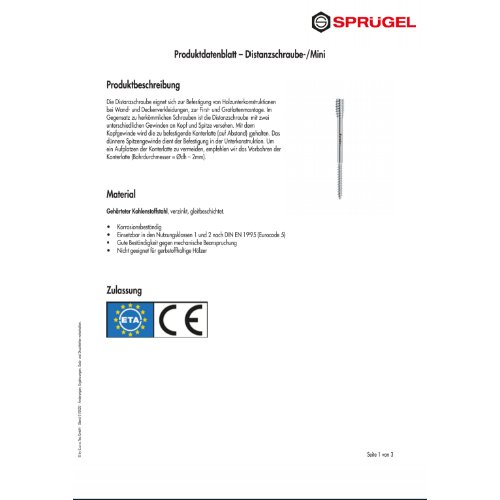 - Eine Vorbohrung für das Kopfgewinde (Befestigung in Konterlatte) wird empfohlen, um ein Aufplatzen der Konterlatte zu vermeiden (Bohrdurchmesser = ØKopfgewinde - 2mm)