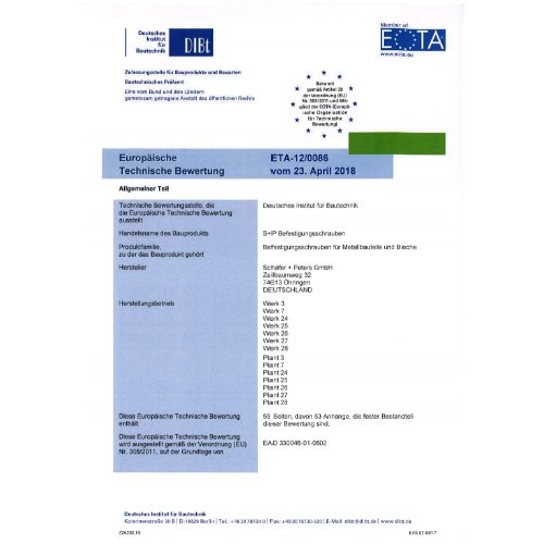 - Zulassung: ETA - 12/0086 und ETA - 13/0178,