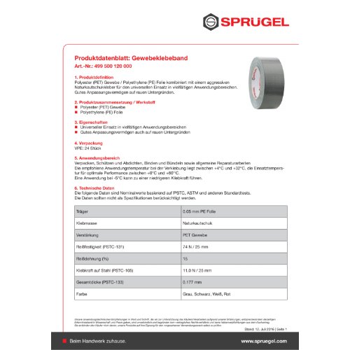 Polyester-Gewebe (PET) und Polyethylen-Folie (PE) kombiniert mit einem aggressiven Naturkautschukkleber für den universellen Einsatz in vielfältigen Anwendungsbereichen