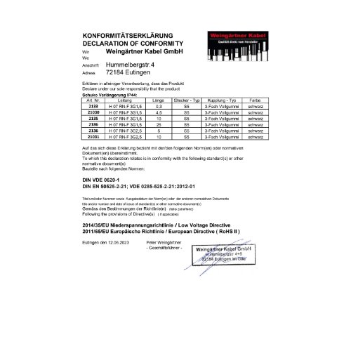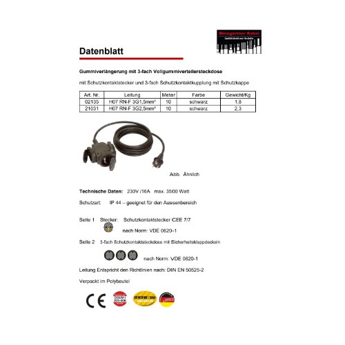 - Kabeltyp: H07RN-F3G1,5,