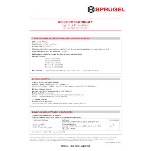 - Nicht für Anwendungen mit PP, PE, Teflon und Bitumen sowie für Verklebungen unter Wasser geeignet