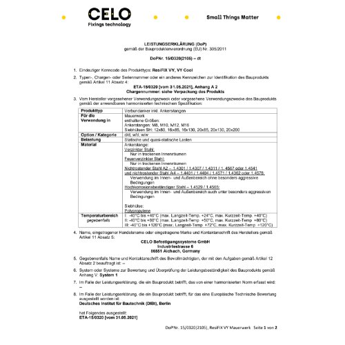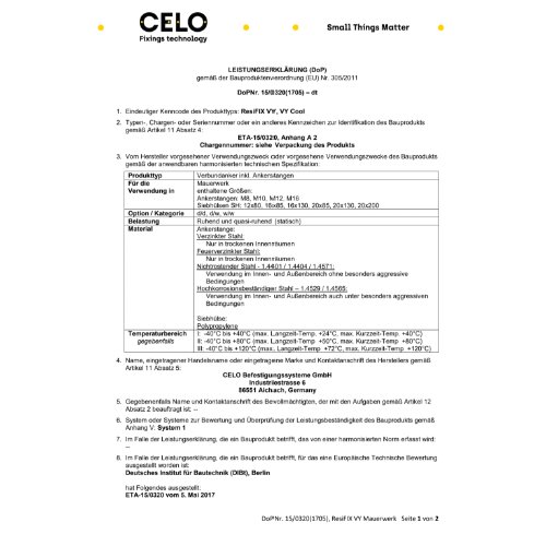 - Zulassung: ETA - 15/0320,ETA - 10/0134,