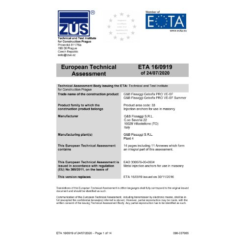 - Zulassung: ETA - 16/0919,ETA - 19/0699,