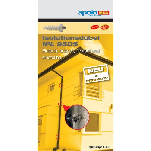 - Wärmedämm-Verbundsysteme (WDVS), Polystyrolplatten (EPS, XPS), Holzfaserdämmplatten (Vorbohren: 13mm), Hartschaumplatten, Styroporplatten, Heraklithplatten
