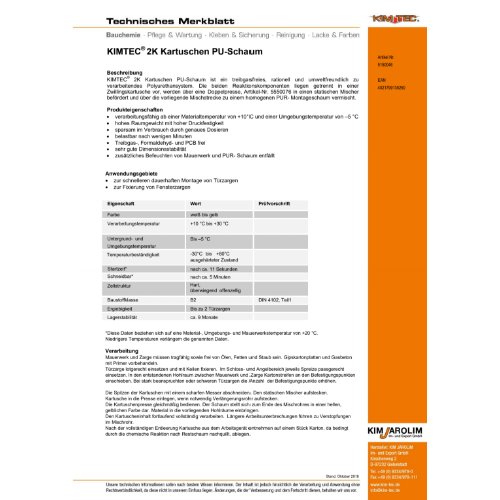 die beiden Reaktionskomponenten liegen getrennt gelagert in einer Zwillingskartusche vor, werden über eine Kartuschenpistole in einen statischen Mischer befördert und über die vorliegende Mischstrecke zu einem homogenen PUR Montageschaum vermischt