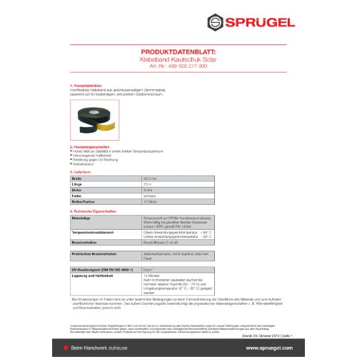 - Temperaturbeständigkeit max.: + 150 (Klebeseite nur bis maximal +85°C einsetzbar) °C,