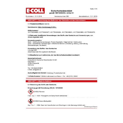 - Achtung: Kann bei Verschlucken und Eindringen in die Atemwege tödlich sein. Verursacht Hautreizungen.