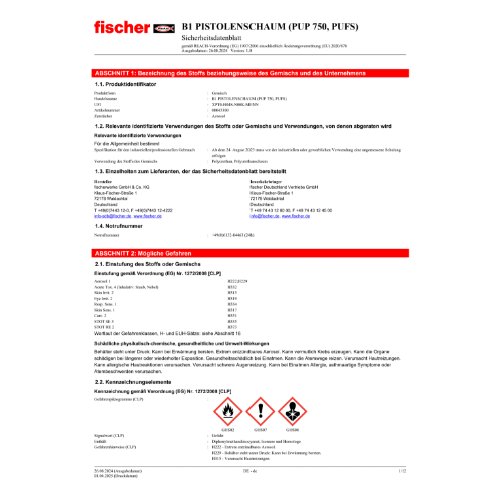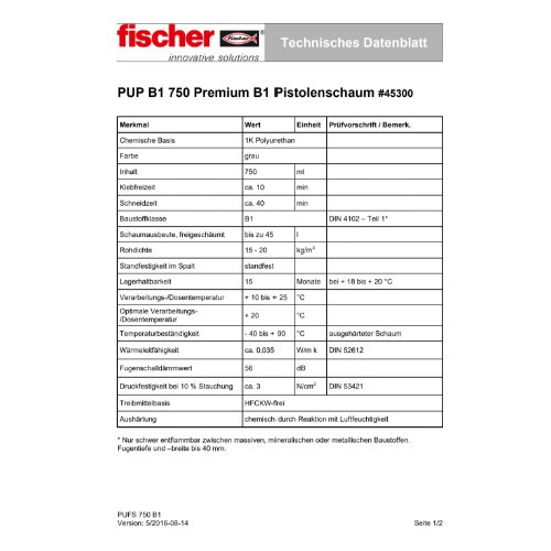 - Der Pistolenschaum ist gemäß B1-Prüfung schwerentflammbar und darf daher zwischen massiven, mineralischen oder metallischen Baustoffen eingesetzt werden