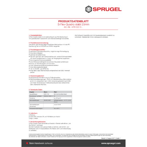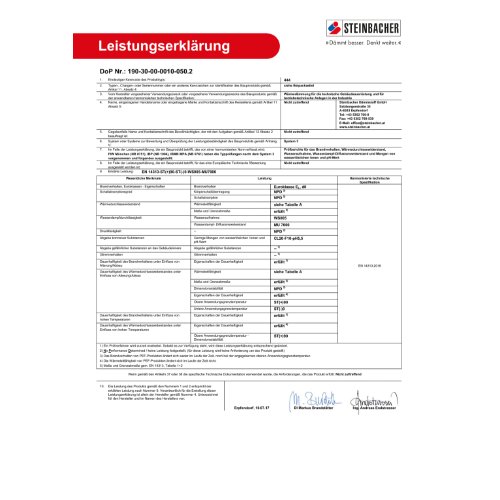 • Baustoffklasse gem. DIN EN 13501-1: Euroklasse E (d0),