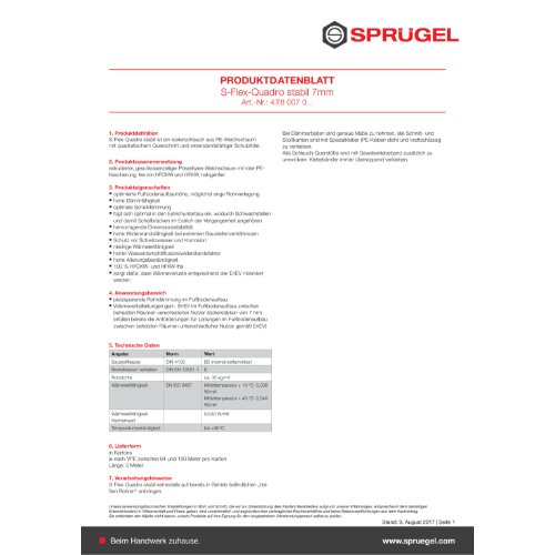 • Baustoffklasse gem. DIN EN 13501-1: Euroklasse E (d0),