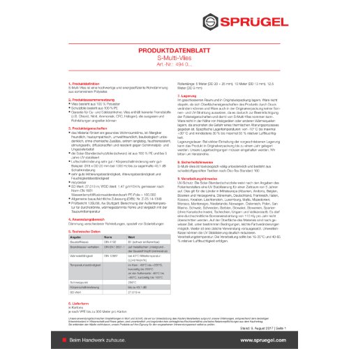 - Baustoffklasse gem. DIN 4102: B1 (schwer entflammbar),