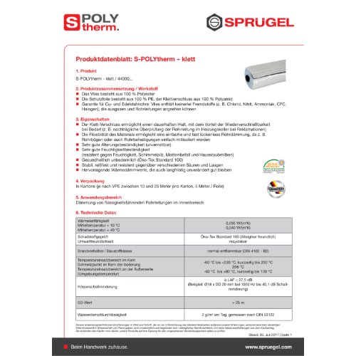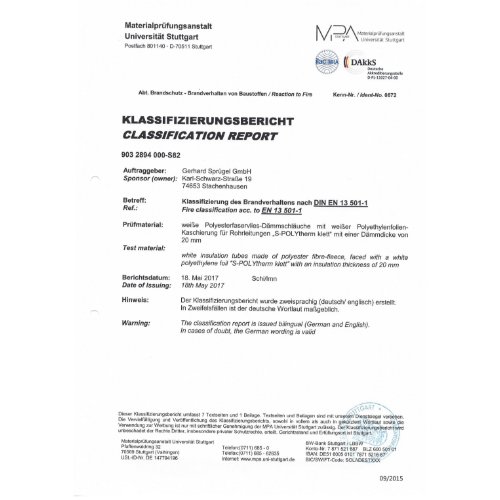 - Baustoffklasse gem. DIN 4102: B2 (normal entflammbar),