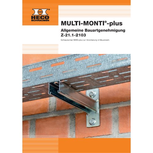 Der Schraubanker MULTI-MONTI®-plus (MMS-plus) ist eine Weiterentwicklung der Betonschraube MULTI-MONTI®. Er wird ohne Dübel direkt in ein vorgebohrtes Loch geschraubt und ist sofort belastbar. Die verstärkte Verzahnung an der Schraubenspitze schneidet beim Einschrauben ein Innengewinde in den Baustoff. Dadurch entsteht ein Formschluss, über den schließlich die Verankerung erfolgt. Dies vereinfacht nicht nur den Montagevorgang, sondern gewährleistet dem Handwerker ein hohes Maß an Anwendungssicherheit. Die Betonschraube MULTI-MONTI®-plus lässt sich randnah und ohne Drehmomentschlüssel verarbeiten, ist vollständig demontierbar und nach Prüfung wiederverwendbar