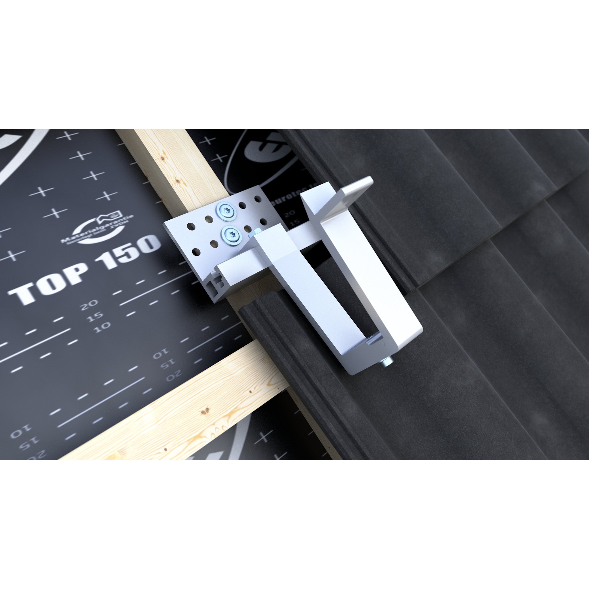 Die Montageschiene Trapezblech ready ist für die Befestigung von Solarmodulen auf einem Trapezblechdach konzipiert worden. Mit einer Länge von 370 mm ist es für alle gängigen Trapezbleche geeignet und die große Anzahl an Bohrungen erleichtern die Positionierung und Befestigung. Dadurch, dass lediglich die kurzen Elemente an den notwendigen Positionen angebracht werden, wird die Handhabung und Montage ebenfalls anwenderfreundlicher.