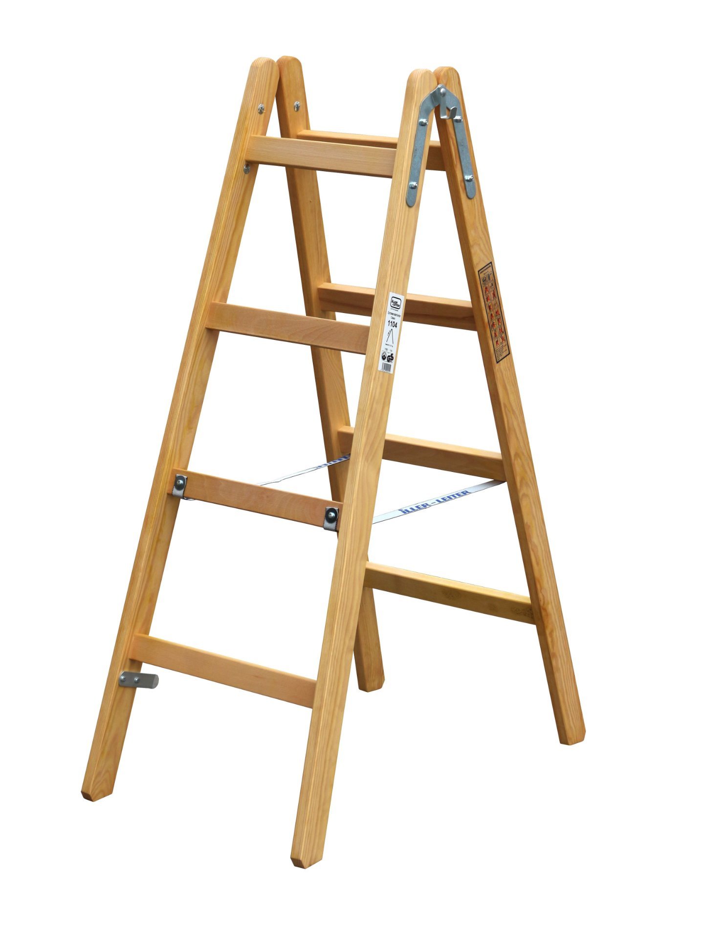 Stufenstehleiter aus Holz mit extratiefen ergonomischen Tritten im Arbeitsbereich