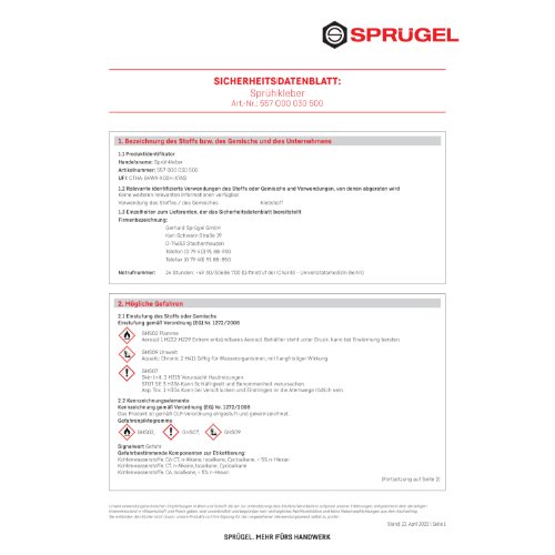 - Verklebt dauerhaft miteinander und untereinander: Papier, Pappe, Styropor, Filz, Metall, viele Kunst- und Schaumstoffe, Holz, die meisten Textilgewebe, Dämmmatten usw.