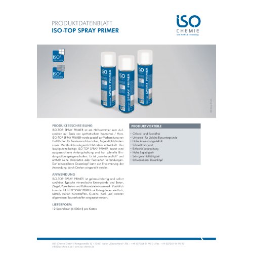 - ISO-TOP SPRAY PRIMER ist gebrauchsfertig und sofort sprühbar.