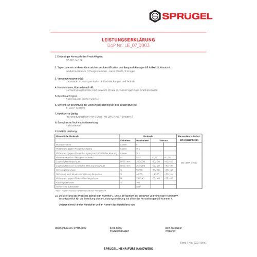 SP-PRO 140 SK ist eine hochdiffusionsoffene Unterdeck- / Unterspannbahn bestehend aus drei Schichten - mikroporöser Film zwischen zwei PP-Vliesschichten. Die Bahn ist für vollgedämmte, ungeschalte und geschalte Steildächer geeignet und darf direkt auf Schalung sowie auf Wärmedämmung und / oder Sparren mit empfohlener Überlappung verlegt werden. Das Produkt entspricht der ZVDH-Produktdatenblatt Klasse UDB-A / USB-A und enthält keine Gefahrstoffe.